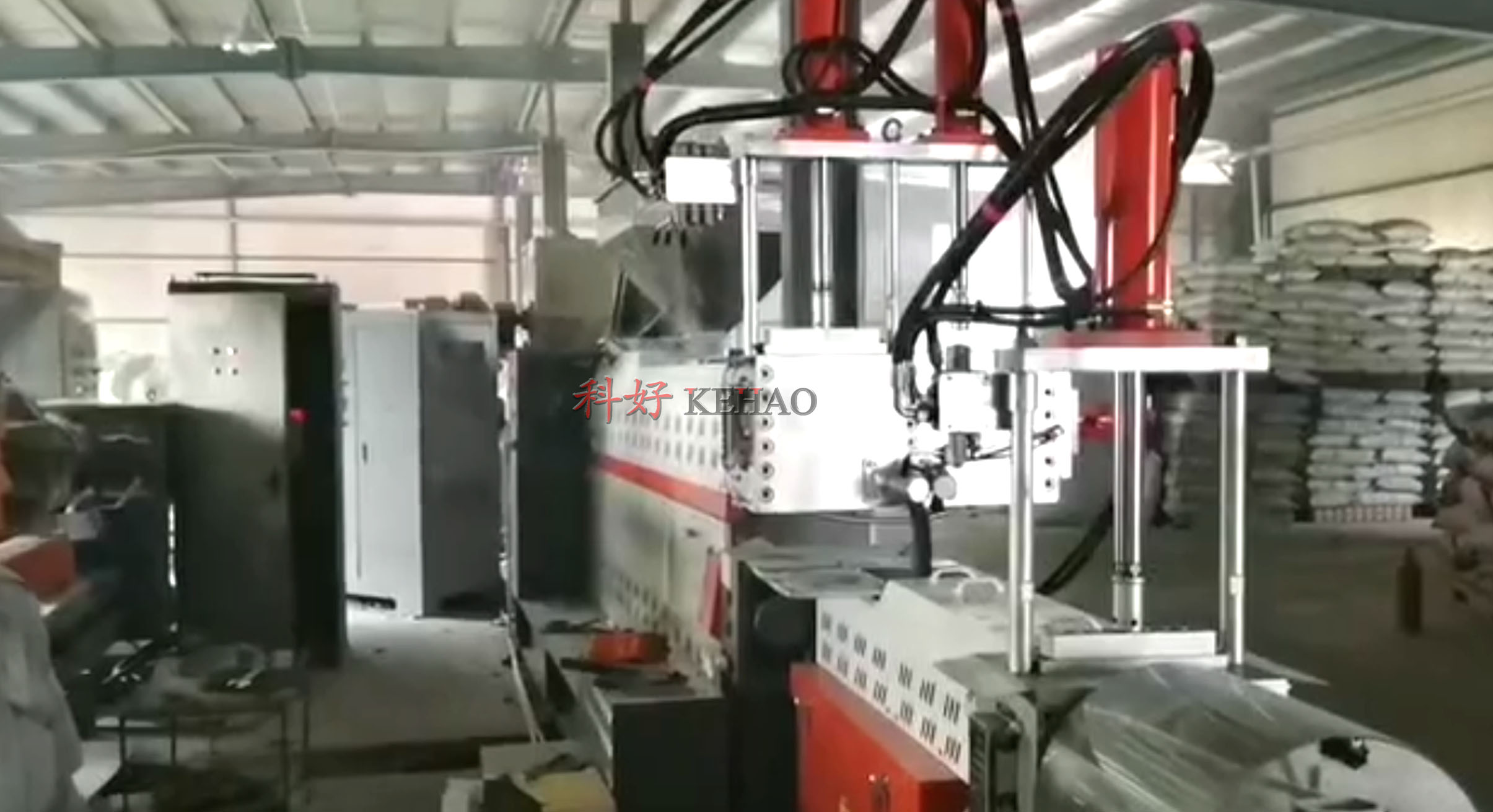 新疆客戶pe水環切造粒機組安裝成功